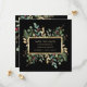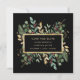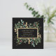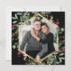 Ce magnifique mariage de Noël sauvez la date présente des vacances vertes et feuilles avec des feuilles en faux or et des baies rouges saintes, et un cadre en or central sur un arrière - plan noir moderne. Votre photo personnelle se trouve à l'arrière, entourée d'un autre cadre géométrique doré avec verdure hivernale.