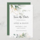 Élégant Sauvez la Date invitations de mariage avec une nature, or et vert aquarelle design feuille, et un feuillage, la célébration botanique de la vie modèle qui est facile à personnaliser.