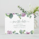 Écriture manuscrite moderne eucalyptus violet et vert floral sauvez la carte d'annonce de la date pour informer votre famille et vos amis de vos nouvelles passionnantes. Customisez facilement cette carte végétale en cliquant sur le bouton "Personnaliser" ci-dessus. CONSEIL : La suite de faire-part de mariage est également disponible dans notre magasin dans la collection ci-dessous. Trouvez vos articles pour les jours précédant le mariage comme le faire-part de mariage, rsvp, l'hébergement, les informations sur le site Web et les articles pour le mariage, y compris mais sans s'y limiter l'ensemble de bougies, assiettes et plus
