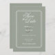 Une invitation de mariage sur le thème Art déco vert sauge élégant avec une typographie stylisée. Conçu par Thisisnotme©