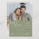Save The Date Vert sauge Élégant Floral Deux Photos Mariage