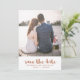 Mariage simple et chic sauvegarder la carte date dispose d'une jolie impression pois brun et blanc en terre cuite avec typographie de script de brosse. Ajoutez simplement vos noms et votre photo préférée pour faire de ce design classique votre propre.