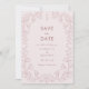 Rose Vierge Enregistrer La Date. Romantique et intemporelle, ce mariage rose vif à l'exception de la carte datant présente des pivoines florales d'art vintage arrangées comme un cadre agréable qui peut être utilisé pour toute saison mariage. Ajoutez une touche d'élégance moderne et classique à votre journée spéciale avec ce faire-part mariage élégant et magnifique. Texte Rose poussiéreux sur un arrière - plan rose pâle avec une photo fiançailles à l'arrière.