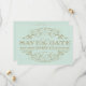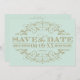 Des tourbillons décoratifs et des fioritures encadrent ce mariage d'inspiration vintage et élégante, à l'exception du design de la carte de date. La conception recto verso inclut tous les détails importants pour les futurs noces de mariée et de mariée. Vert menthe pâle bleu vert à la menthe avec des couleurs d'or antique.