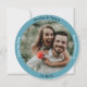 Un papier rond style vinyle rétro Enregistrer la carte Date pour votre mariage avec un étiquette étiquette bleu rétro. Cette amusante carte personnalisée comprend une image d'enregistrement vinyle sur un côté avec un titre d'album "Save the Date" dans un script rétro et vos noms. Il contient tous les détails essentiels : date, emplacement, site web (texte et code QR). La face arrière contient votre photo. Vos noms, "Enregistrer la date", l'emplacement et la date figurent sur une bordure circulaire. Si vous aimez la musique, c'est une excellente façon de donner le ton à votre mariage. Ce style vintage d'album LP met vos invités prêts à danser à tout ce qui est sur votre playlist : pays, rock, disco, R&B, hip hop, normes disco - ou peut-être tout cela et plus encore! Tout le texte est personnalisé par vous. Vous pouvez customiser des couleurs de étiquette, de bordure et de texte dans l'outil de conception. La couleur de l'enregistrement est noire.