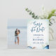 La calligraphie de l'aquarelle moderne sauve la date avec des coquillages, des étoiles de mer, des algues et une belle ancre. arrière - plan d'aquarelle bleu turquoise. Combinaison de polices élégante. Parfait pour les mariages à la plage, ou mariage de style nautique.