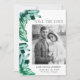 Annoncez votre date de mariage avec notre photo design et moderne enregistrer la carte de date. Le design comporte une bordure de cristaux d'aquarelle peints dans les tons vert émeraude. "Save the Date" s'affiche dans une police serif moderne en noir. Personnalisez l'unique enregistrer la carte de date en ajoutant votre photo, vos noms, votre date de mariage et votre emplacement de mariage. La carte s'inverse pour afficher un bel arrière - plan couleur vert émeraude.