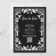 Un design moderne de cowboy occidental avec des éléments dessinés à la main d'un crâne de vache, des fers à cheval, des ornements floraux et des cactus. Le mariage à bordure florale noir et blanc est orné de fleurs dessinées à la main, de cactus, de crâne de vache et de fer à cheval. Ce mariage campagnard contemporain moderne de style occidental est idéal pour toutes les saisons. Un élégant ranch noir et blanc, une ferme ou une grange design avec des illustrations dessinées à la main. Un mariage à thème de cowboy Western Country sauvez le design de la carte de date avec des éléments modernes et élégants. Des invitations de mariage et d'autres articles de papeterie sont également disponibles.