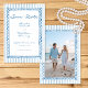 This whimsical photo wedding save the date card features a soft blue, playful scalloped rectangle frame against a classic blue and white striped background. Add your favorite couple photo to the frame on the back. Perfect for a wedding with a preppy or coastal aesthetic, this charming design provides a sweet, hand-painted look for your special celebration. Created by Simply Farmhouse Press.