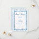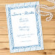 This whimsical wedding save the date card features a soft blue, playful scalloped rectangle frame against a classic blue and white striped background. Perfect for a wedding with a preppy or coastal aesthetic, this charming design provides a sweet, hand-painted look for your special celebration. Created by Simply Farmhouse Press.