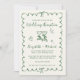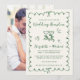 Romantic light cream wedding reception save the date featuring a green wavy frame adorned with coquette bows, whimsical hand drawn illustrations of a heart, stars and wine glasses, and "Wedding Reception" and the names of the bride and groom in a fun, playful green script. Your photo fills the back of the announcement.