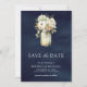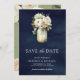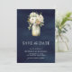 Save The Date White Roses Mason Jar Photo Marine Blue Mariage