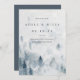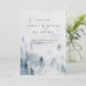 Elégant mariage d'hiver enregistrer les cartes de datation comprennent du lettrage noir classique sur une aquarelle arrière - plan d'une montagne enneigée parsemée de pins dans des bleus et gris doux. Choix chic pour les mariages d'hiver en forêt ou en montagne, ces élégants plats à sauvegarder les cartes de date sont faciles à customiser avec vos noms, date mariage, emplacement mariage, site Web ou une indication qu'une invitation formelle suivra.