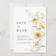A romantic yellow sunflower and wildflower save the date card featuring soft watercolor florals in an elegant vertical botanical design. Warm golden-yellow blooms and delicate greenery create a natural, garden-inspired look that feels both timeless and modern.