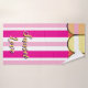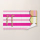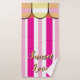 Summertime beach vibes. Pastel pink and bright hot pink and white vertical stripes. Ocean breeze, Summer dreams, Sunset love script typograpy in pink and yellow. Pastel yellow watercolor stripes across top of white and pastel pink scallops. Leave wording or insert your own. Original Artwork Design by TamiraZDesigns.