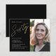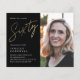 Invitation de fête d'anniversaire 60 ans minimaliste moderne avec un numéro de feuille d'or faux stylé écrit à la main Soixante et les détails de votre fête dans une police serif classique sur fond noir, simple et élégant, grande surprise pour adultes pour hommes et femmes à l'occasion d'un anniversaire marquant. la couleur de fond noir peut être changée à n'importe quelle couleur de votre choix.