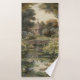 Tableau vintage d'une scène botanique de cygnes nageant dans l'eau dans un jardin anglais avec nénuphars, ponts et nombreuses fleurs exotiques