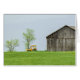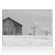 Une grange rustique et un vieux tracteur soulignent cette image austère mais agréable.