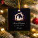 Ornement de Noël noir et blanc pour donner à votre famille et amis de s'accrocher à leur arbre. Babe dans une crèche, star de Bethléem. Date au verso. #Noël