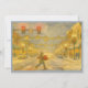 Cette aquarelle capture le charme nostalgique d'une soirée de vacances dans une petite ville. La scène représente une rue principale enneigée illuminée par des guirlandes lumineuses dorées et des ornements festifs en forme de cloche suspendus au-dessus. Les devantures en brique brillent de vitrines chaudes, tandis que des lampadaires de style vintage enveloppés de guirlandes et de nœuds rouges bordent les trottoirs. Cette pièce évoque l'esprit de communauté, de célébration et de traditions de vacances intemporelles.