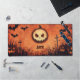 Une scène d'Halloween vibrante et inquiétante mettant en vedette des citrouilles sculptées, des chauves-souris et un arrière-plan hanté. Cette illustration capture l'essence de la saison effrayante avec ses couleurs sombres et ses éléments festifs. Idéal pour les amateurs d'horreur et d'Halloween. Vous pouvez personnaliser le design en changeant le texte.