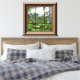 Il présente une fenêtre encadrée en faux bois donnant sur le paysage tropical. Le cadre continue autour des côtés de la toile. Visualisez des images supplémentaires pour un regard plus attentif.
