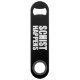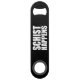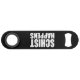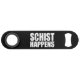 Ce ouvre-bouteille à thème géologique noir présente l'expression cornée classique "Schist Happens", une variante de jeu de mots d'un autre dicton commun. Le design est en caractères gras et blancs sur un arrière - plan noir.
