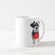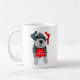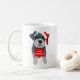 Schnauzer miniature portant le chapeau de Père Noël et apportant un sac cadeau avec les mots Joyeux Noël! Joli, amusant et simple design de Noël. Gris, rouge et blanc.