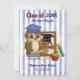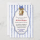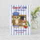 Joli érudit Hibou Graduation en mortier casquette assis sur quelques livres à côté d'une bordure photo de tableau de craie. Arrière - plan rayé bleu clair. Remplacez par votre photo et customisez les zones de texte à l'avant et à l'arrière.