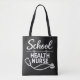 This School Health Nurse tote bag features a clean and modern medical typography design with an ECG heartbeat line and stethoscope illustration.