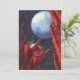 Illustration vintage futuriste de science-fiction représentant des planètes et l'espace. Une vue depuis un profond canyon regardant vers le haut en direction d'un véhicule d'exploration spatiale avec une grande lune et des étoiles dans le ciel nocturne. Un design classique de bande dessinée rétro de science-fiction des années 50.