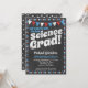 Une invitation amusante et unique à la remise des diplômes scientifiques en style tableau noir avec drapeaux rouges, blancs et bleus et une bordure en pois blanc avec des points à l'arrière.