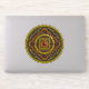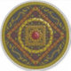 Ce mandala a été conçu pour le signe zodiaque Scorpio, représentant une pierre de rubis au centre entourée d'éléments représentant le signe, tels que le symbole du signe, la constellation, et le symbole alchimique de l'Eau, ainsi que des vignes et des tissages en fibre qui l'enveloppent dans une image solide dans des tons de rouge, d'or et de noir.