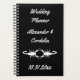 Ce Wedding planner impressionnant présente une image art numérique d'une paire de magnifiques scorpions blancs qui se font face. Chaque scorpion est blanc et a huit jambes, une piqûre venimeuse et une paire de pinces. Les pinces sont tenues ensemble pour former la forme d'un coeur. L'arrière - plan est noir. Un beau design Mariage gothique. Il y a du texte personnalisé pour que vous puissiez inclure les noms du couple heureux et la date du Mariage.