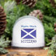 Le globe neigeux personnalisé montre le drapeau croisé Scot ou St. Andrew's avec le mot SCOTLAND en bas dans les couleurs du drapeau. Ci-dessus, en bleu, ajoutez un nom. Créez un cadeau spécial pour quelqu'un d'ascendance écossaise. Fait un joli cadeau de vacances ou rembourrage.