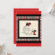 Scottish Terriers profitant de la neige du Nouvel An avec une frontière plaid utilisée ici sur une invitation de la fête du Nouvel An.