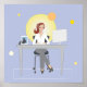 Au travail, mais avec son Scottie l'accompagnant en esprit.