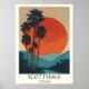 Découvrez l'essence sophistiquée et élégante de Scottsdale, Arizona avec cette affiche de voyage minimaliste rétro. L'élégant design présente des silhouettes de palmiers et un soleil de couchage audacieux et chaleureux, reflétant le mélange unique de luxe désert de la ville et de cool moderne du milieu du siècle. Cette impression d'art chic est un parfait accent pour une maison, un bureau ou un mur de galerie moderne.