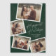 Moderne Script 4 Photo Collage Carte de Joyeuses Fêtes avec message supplémentaire de la famille au verso. Cliquez sur le bouton Personnaliser pour personnaliser ce design avec vos photos et votre texte.