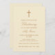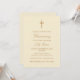 Beige Script Elegant Cream Christening Invitation, s'il vous plaît personnaliser comme souhaité, en utilisant le modèle de personnalisation en ligne avant de commander. Cette jolie invitation présente à la fois la croix et le texte élégant et élégant dans une teinte dorée de beige sur un arrière - plan couleur crème.