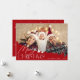 design carte photo moderne rouge joyeux de noël avec image personnalisée et écriture blanche.