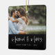 Célébrez votre journée spéciale avec notre élégante collection White Script Married & Joyeux Black Photo Ornament. Ce magnifique ornement carré en céramique est le moyen parfait pour commémorer votre mariage ou occasion spéciale et fait un cadeau de vacances réfléchi pour les proches. L'ornement comporte les mots "marié et joyeux" magnifiquement écrit à la main en écriture blanche, centré au fond. Sous cette phrase festive, vos noms personnalisés et votre date de mariage sont affichés dans une police moderne blanche sans-serif, ajoutant une touche intemporelle et sophistiquée. Le texte est placé contre un arrière - plan noir en gras, assurant clarté et lisibilité. Votre photo de couple complète sert d'arrière - plan étonnant pour ce design, faisant de l'ornement un gardien chéri qui capture votre moment mémorable. Le même design personnalisé est présenté à la fois sur le devant et sur le dos, ce qui garantit qu'il est magnifique de n'importe quel angle. Conçu en céramique de haute qualité, cet ornement est durable et durable, parfait pour orner votre sapin de Noël année après année. Créez une mémoire durable avec ce script blanc unique et personnalisé Married & Joyeux Black Photo Ornament, conçu pour apporter joie et chaleur à vos célébrations de vacances.