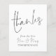Budget Script Nouveau M. Mme Mariage N'Importe Quelle Couleur Merci. Un prix économique PETIT 4,5 po x 5,6 po alternatif. Disponible dans un STOCK CARTE SEMI GLOSS 110 lb qui est l'option par défaut (recommandé pour les invitations), OU un STOCK PAPIER THINNER SATIN FINISH 80 lb (idéal pour les boîtiers). Les enveloppes sont en option et légèrement plus grandes que la taille de la carte. Merci et Mr & Mrs sont mis dans un élégant script de style manuscrit sur le devant et le reste du texte sur chaque côté vous pouvez facilement personnaliser avec vos noms, et votre message de remerciement pour vos invités. Affiché en noir et blanc, cependant peut être changée à n'importe quelle couleur de votre choix via l'option personnaliser supplémentaire.