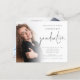 Une alternative économique sur un plus petit 4,5 x 5,6 pouces semi-brillant de 110 livres, d'épaisseur similaire à une carte postale. Script moderne 6 Photos Graduation Party Invitation. La graduation est dans un style manuscrit défini. Personnalisez facilement le reste du texte à vos propres détails et remplacez les six exemples de photos à l'avant et à l'arrière par les vôtres.