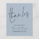 Script Budget Nouveau M. Mme Mariage Dusty Blue Merci. Un prix économique PETIT 4,5 po x 5,6 po alternatif. Disponible dans un STOCK CARTE SEMI GLOSS 110 lb qui est l'option par défaut (recommandé pour les invitations), OU un STOCK PAPIER THINNER SATIN FINISH 80 lb (idéal pour les boîtiers). Les enveloppes sont en option et légèrement plus grandes que la taille de la carte. Merci et Mr & Mrs sont mis dans un élégant script de style manuscrit sur le devant et le reste du texte sur chaque côté vous pouvez facilement personnaliser avec vos noms, et votre message de remerciement pour vos invités. Vous pouvez changer à n'importe quelle couleur de votre choix via l'option personnaliser supplémentaire.