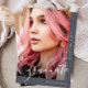 Cette belle faire-part de graduation présente un script gradué gris clair sur un arrière - plan bleu ardoise, et deux photos.