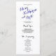 De magnifiques typographies de script bleu marine et noir sur un arrière - plan blanc font ressortir ces élégants programmes de mariage modernes. Design by Elke Clarke © Customisez avec votre couleur arrière - plan et toutes vos informations personnelles à un programme de mariage de luxe que vos huissiers peuvent distribuer lorsque vos invités entrent dans l'église ou sont assis là où la cérémonie aura lieu. Il aide les gens à suivre la cérémonie mais agit aussi comme un gardien pour vos invités. Vous pouvez utiliser les champs modèles pour remplir les informations suggérées sur votre mariage et l'ordre de service et vous remercier de message ou sélectionner "customisez-le" et utiliser le menu modifier pour modifier l'espacement du texte, les polices, les couleurs que vous souhaitez créer vos propres programmes de mariage.