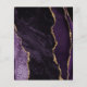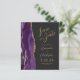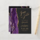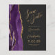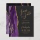 Le bord gauche de cet élégant mariage moderne, sauf la carte de date, est doté d'une bordure d'aquarelle violette ornée d'une parties scintillant en faux or. Le texte personnalisable combine un script de couleur or et des polices sans serif sur un arrière - plan noir en ardoise. L'envers est assorti d'une agate violette et dorée.