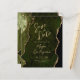 Ce mariage élégant sauvegarder la carte date dispose d'une image arrière - plan d'agate d'aquarelle verte d'olive taillée avec parties scintillant en faux or. Le texte personnalisable combine écriture manuscrite moderne couleur or, cuivre et polices italiques. L'envers présente un design coordonné d'agate vert olive et or.