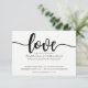 Script simple et élégant | Les invitations de mariage modernes sont parfaites pour les couples qui veulent un design simple mais élégant d'invitation de mariage. Caractéristiques "LOVE" en script noir. Étincelle & Parties scintillant © Le design présente les noms des mariés et des mariés dans une police de caractères élégante. Affiché en noir et blanc mais peut être customisé à vos couleurs mariages pour le texte et l'arrière - plan. Ajoutez d'autres graphiques, photos ou monogrammes pour personnaliser ce modèle.